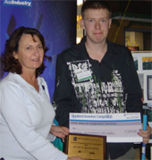 Four awards were presented. First place for the Gippsland Inventor went to Mr. Jarrod Richards of Foster, South Gippsland who invented a "Ball Retriever". The device collects balls and other items out of roofing gutters. Mr. Richards won $650 and a plaque, which was supported by AusIndustry. "The Ball Retriever won because it scored well in all areas" said Christine Kininmonth, "from organizing legal protection of his invention, through to market research as well as the unique concept and technically sound prototype".