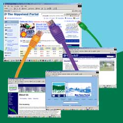 Surely one humble website cannot possibly hold all that Gippsland can have to offer. The solution, according to Portal Development Team Leader Antony Svasek, is "to build doorways into individual sections or features of Gippsland through a series of inter-connected websites. Each site will be specific to the area or theme that it represents, offering specific information and resources about and for the province it serves." This means that there will be several websites, each focusing on one theme.